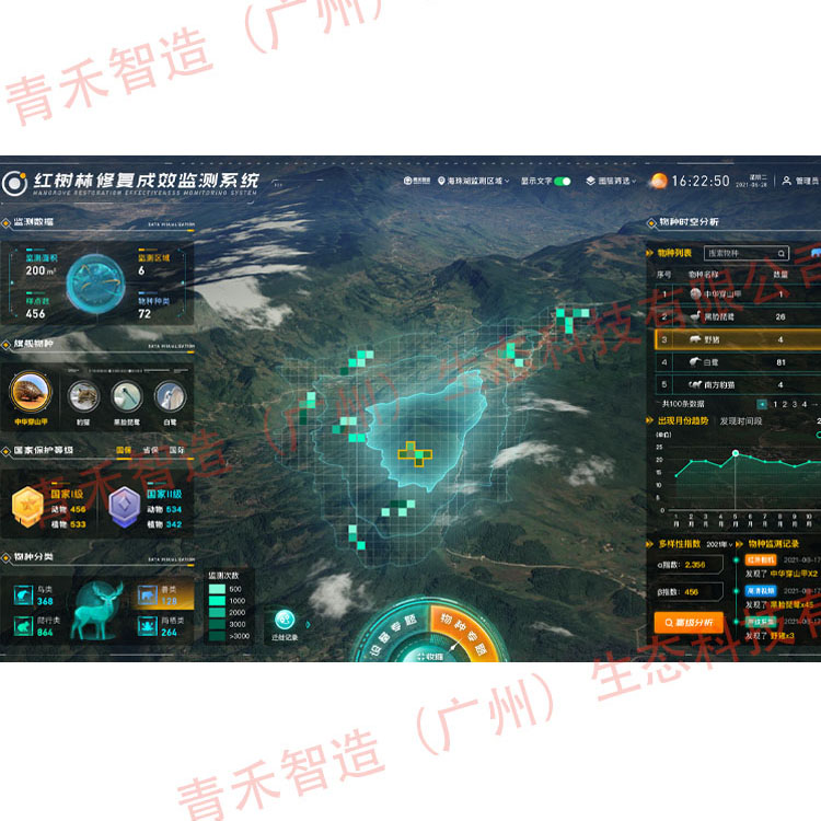 在生态原则前提下,在保护区、湿地公园、矿山、工业废地等区域开展生态修复,结合自然生态方法,逐步恢复原生生态系统和原生景观,同时动态监测并展示生态修复变化过程。